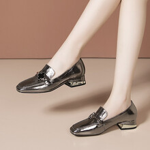 玖辛粗跟中跟单鞋女士皮鞋春秋季浅口工装鞋牛漆皮定制大小码女鞋子 枪色 37