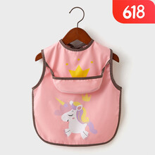 宝宝吃饭罩衣防水防脏夏季薄款儿童围裙无袖婴儿围兜饭兜男女小孩【推荐】 粉色 独角兽坎肩 【推荐】 100 小码(适合0-3岁)