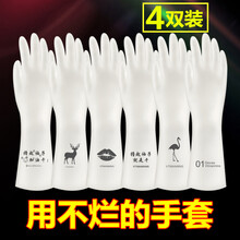 【4双】加厚耐用型家用厨房洗碗手套 女家务刷碗洗衣服橡胶皮防水绿豆芽 【4双装】图案随机 小码