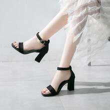 夏季大码女鞋40-43宽胖脚凉鞋加肥脚谅涼鞋女2020小码33高跟一字扣带中跟粗跟41 黑色5厘米 41