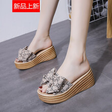 【官方特价】!!凉拖2021年新款女外穿坡跟时尚厚底33码34码增高小码夏天高跟拖鞋 卡其色 36