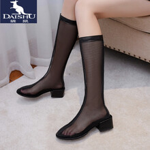 袋鼠轻奢网靴女夏季凉靴夏天小码长靴镂空高筒靴子大码4中筒百搭女鞋 黑色 32