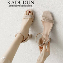 KADUDUN【官方发货】半高跟小码33一字扣带凉鞋女夏季新款中跟大码4143罗马淑女风 裸色跟高5.5cm 35