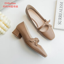 DX&yibaa 粗跟中跟小码313233女鞋白色小脚鞋34方头单鞋女浅口奶奶鞋秋夏新 卡其色 31