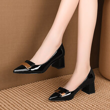谜尚百丽高跟单鞋女2019春秋百搭时尚粗跟尖头浅口女士大小码33-42秋鞋女 黑色 37