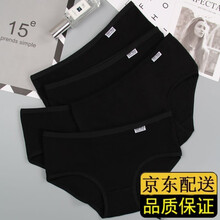 少女简约舒适纯棉内裤女士中低腰学生安全全棉黑色三角裤女 黑色5条 小码75-105斤