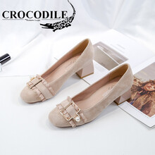 鳄鱼恤(CROCODILE)℘国货轻奢品牌℘单鞋女2021年新款春季粗跟高跟法式通勤小码春款小香风春 裸色 32