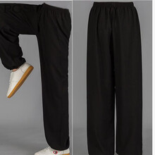 男士夏季裤子太极服裤绵绸练功武术男女青少中老年中国风灯笼大码 黑色男女皆可穿 小码宽松版100-150斤左右