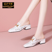 诺伊可昕中跟凉拖鞋女夏真牛皮半拖鞋夏季小码女鞋外穿穆勒鞋舒适透气洞洞鞋 白色*镂空 38