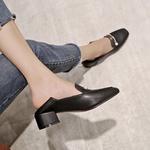 爵士迹尘2020新款单鞋女珍珠水钻小装饰穆勒鞋女大小码方头粗跟玛丽珍鞋女 黑色 33