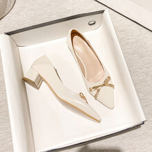 卡度顿313233小码女鞋高跟低跟单鞋小香风中跟尖头大码脚宽胖妹妹41-43 杏色 33