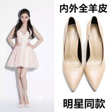 米维兰真皮高跟鞋女细跟尖头软面中跟5cm少女单鞋8厘米黑色职业正装工作鞋32小码33性感优雅红色婚鞋 裸色(跟高5.5厘米) 33