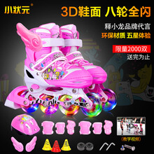 小状元 溜冰鞋 儿童套装轮滑鞋旱冰鞋滑冰鞋 初学者男女小孩直排轮单排轮滑 【粉色】全闪全套+头盔护具 小码适合鞋码27-32