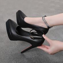 华百·丽人年会走秀性感12cm高跟鞋防水台细跟一字扣带宴会礼服单鞋女小码33尺码大·东北穿 黑色 33