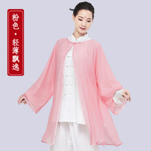 山人运动太极服披纱女春夏季雪纺渐变色披纱比赛表演服太极拳服装男 纯色披纱-粉色 S-小码