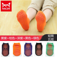 猫人地板袜成人 防滑地板袜子瑜伽薄款大人儿童早教室内袜套底男女成人防滑蹦床袜 防滑短筒 黑紫+橘色+深紫+黑色+绿色 小码M 约1-4岁 适合鞋码22-27