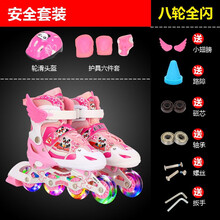 溜冰鞋儿童全套装3-4-5-6-8-9-10-12岁男女小孩儿旱冰轮滑鞋闪光 粉色全闪套装(含头盔+护具+礼包) S小码(适合平时27-33码)