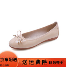 三象鲨2021新款蛋卷鞋软底豆豆鞋平底单鞋女大码女鞋子414243码小码3334码小香风少女配裙 杏色(漆皮) 43