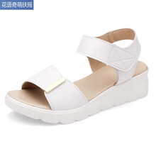 女式特大号皮凉鞋加肥加大码女士凉鞋41-43码32小码33-34夏季坡跟平底 白色 36