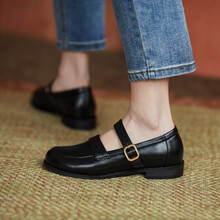 蜜桃妖精单鞋女2021新款平底鞋jk服鞋一字带英伦风小皮鞋胖mm大码脚胖宽脚厚复古玛丽珍鞋脚瘦小码鞋 黑色 38-标准码