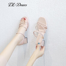 今年流行的绑带高跟凉鞋 夏天凉鞋女2021年新款小码时装夏季绑带温柔中跟粗跟两穿高跟鞋子 浅粉色跟高5cm【交叉绑带】 36