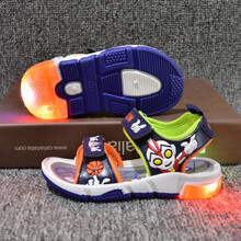 【品牌特价】丘泽儿童凉鞋20夏季男女儿童凉鞋闪灯奥特曼沙滩鞋软底1-6岁超人凉鞋防滑kids童鞋 1907黑蓝色 内长14.0cm 26小码