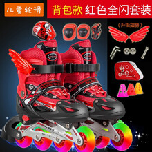3-4-6-8-10-12岁儿童溜冰鞋全套轮滑男孩女孩闪光旱冰滑冰鞋可调 背包款-八轮全闪红色套装头盔护具礼包 小码(适合平时鞋码26-32)