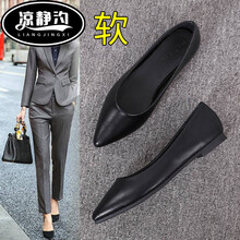 平跟工作鞋女黑色平底软底职业尖头上班皮鞋工鞋防滑大码小码单鞋 黑色 36