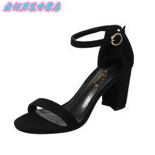 凉鞋女超小码凉鞋女夏粗跟一字扣带百搭简约绒面露趾高跟小码凉鞋31 32 33 黑色绒面(8CM)跟高 35