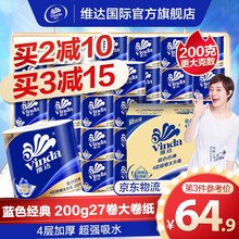 维达(Vinda)蓝色经典卷纸4层加厚200克27卷 有芯卷筒纸巾厕纸手纸卫生纸 整箱