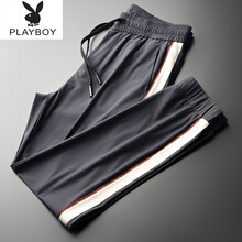 花花公子高档轻奢品牌男装夏季轻薄丝滑撞色休闲运动裤男修身速干时尚薄款收口束脚裤子男 深灰色HKZ20119 XL