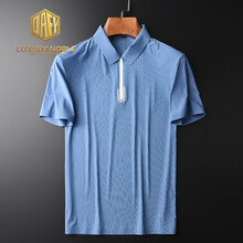 DAFY品牌运动polo衫男夏季薄款冰丝短袖t恤2021夏季新款轻薄柔软丝滑压胶上衣时尚修身休闲体恤 蓝色HTZ20156 M
