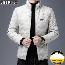 JEEP吉普羽绒服男短款冬季男士外套商务中年修身立领袄子轻薄保暖休闲潮流外衣上衣白鸭绒风衣冬天男装 卡其色 2XL(145-160斤)
