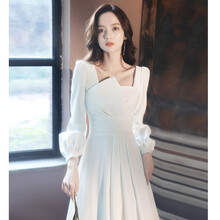 香港潮牌 轻奢品牌晚礼服女宴会礼服裙子平时可穿2021新款气质修身显瘦轻奢小众主持人年会商场同款 白色 XS(建议83-89斤)