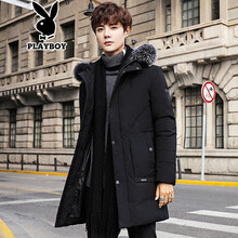 花花公子羽绒服男中长款冬季修身轻薄连帽男士袄子加厚保暖夹克外套休闲潮流外衣上衣青少年风衣冬天大衣男装 YR886黑色 L