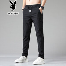 花花公子男装冰丝休闲裤男士夏季薄款新品弹力轻薄透气休闲男裤夏天潮流百搭长裤时尚修身小脚裤子 黑色 31码/腰围2尺4