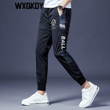 WXQKDY潮牌轻奢休闲裤男 夏季新品男士个性侧边字母徽章烫钻修身束脚长裤男潮流青年轻薄松紧休闲裤男 黑色 XXL