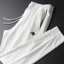 海獒海獒新款轻薄垂坠质感小蜜蜂刺绣休闲九分裤男修身青年时尚白色束脚裤子 白色 XXL
