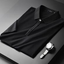 海獒丝光棉面料翻领短袖T恤男潮夏季新款简约修身POLO衫薄款 黑色HT-XZ19035 XL