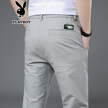 花花公子男装商务休闲裤男士夏季薄款新品弹力轻薄透气潮流百搭休闲男裤夏天长裤时尚修身小脚裤子 浅灰色 32码/腰围2尺5