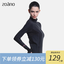 佐纳(Zoano)速干衣女长袖紧身高弹立领健身衣户外跑步健身房修身显瘦训练运动衣瑜伽服女上衣 正黑(立领) L(165-170cm)