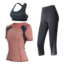 斯泊恩春夏天瑜伽服女套装短袖宽松大码专业速干健身服修身显瘦气质瑜伽套装透气运动跑步服三件套 桃粉上衣+中裤三件套(含文胸) XL【125-140斤】