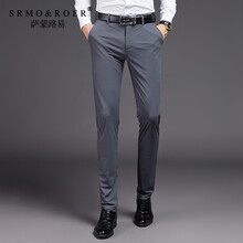 萨蒙路易品牌商务休闲裤男2021年秋季新款轻薄款弹力西裤直筒修身抗皱长裤子 灰色 29