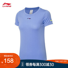 李宁短袖女跑步系列反光防泼水修身运动女士T恤字母2021新品官方旗舰网ATSR264 雪紫蓝-1 L