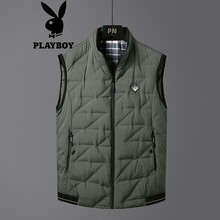 花花公子男士轻薄羽绒马甲男春秋冬季新品马夹男冬天坎肩男春季修身韩版潮流背心 军绿 XXL