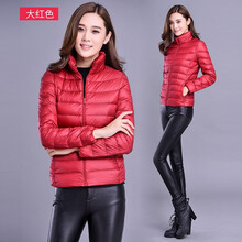 芙绮姿时尚女士轻薄短外套女2021年早秋季新款韩版百搭休闲短款立领修身薄款大码女装外套潮 大红 M