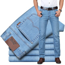 杰柏度(JEBORDO)薄款牛仔裤男士轻商务2021夏款轻薄透气长裤弹力修身直筒裤子休闲胖子大码男裤 MZL-9012QL-J中蓝色【薄款/高腰/修身】 31码 ( 腰围2尺4 ) ...