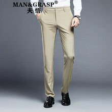 ℘夫悟高端品牌轻奢男装高档冰丝凉感速干商务休闲裤男夏季轻薄款弹力修身裤直筒抗皱长裤子潮流夏装长裤男 卡其色 29