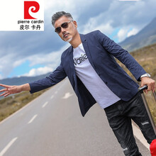 皮尔卡丹男士秋装中年小西装休闲西服轻薄款韩版修身单西男便西春秋季外套针织 藏青色 170/M