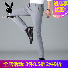 花花公子男士商务休闲裤夏季青年韩版修身小脚轻薄西裤子男直筒宽松微弹力男士长裤直筒裤 灰色 40